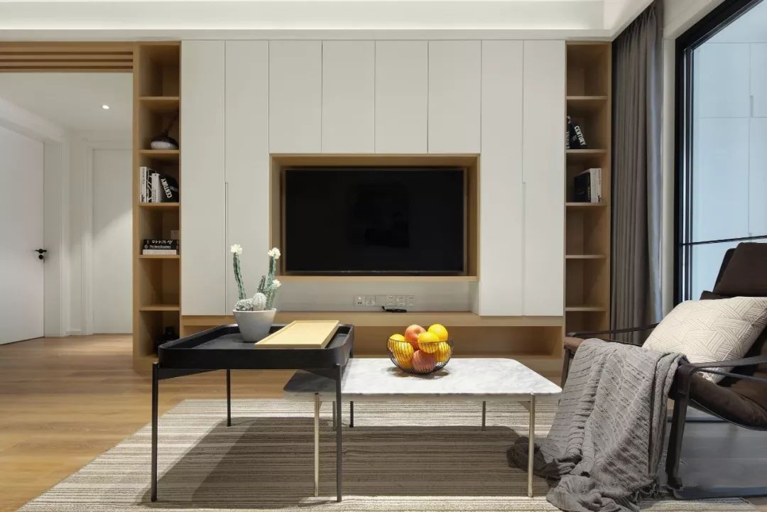 4、選擇木飾面電視背景墻的好處是非常明顯的,但是現在市場上高品質的木材種類相對較少。如果不小心購買到一些質地較差的木飾材料,它們可能含有過多的水分,經不起時間的考驗,很快就會出現變形和開裂的問題。