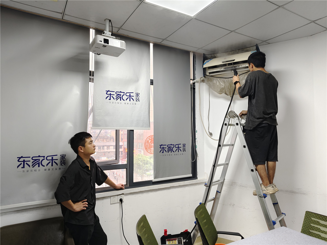 為保證集團總部各部門的健康工作環境,東家樂家裝集團董事辦組織專業空調清洗隊伍對集團總部各部門辦公室內的空調進行清洗及維護保養,確??照{能夠正常運行的同時,保障員工辦公環境的身心健康。