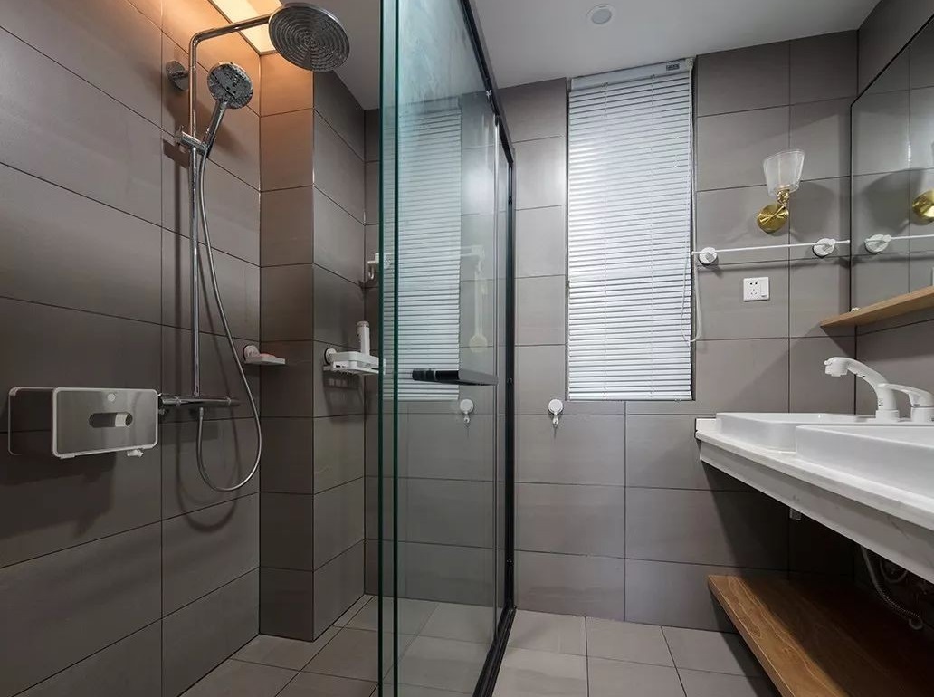 ??另外一種就是玻璃隔斷,一般都是一種簡單橫向玻璃,把衛生間干濕空間分開,衛生間的格局一般是長方形和正方形的,如果是細長的衛生間格局,那么這種淋浴隔斷還是非常適用,最里面可以做淋浴區然后做淋浴隔斷,這樣空間夠用還能起到干濕分離的作用。