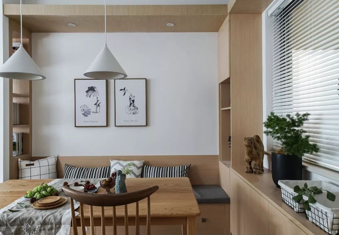 ??如果你家墻面剛好有一塊凹位,又或者靠近餐廳的那一面墻是非承重墻可以拆的話,可以把墻拆了定制一個內嵌的餐邊柜,這樣就可以節省一點空間。