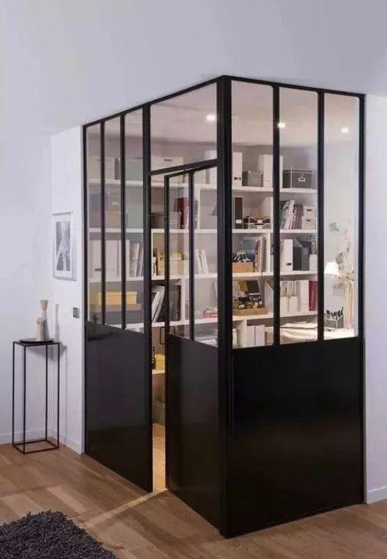 書房和客廳之間的隔墻也是設(shè)置內(nèi)窗的好地方,不僅可以使客廳更加有開放性,還可以增加采光和通風(fēng),使空間不那么悶。