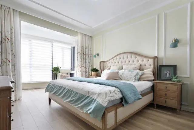 臥室墻面換成了暖色調(diào)的墻漆,搭配上石膏線造型,有溫度又不單調(diào)。橡木色的家具與地板相呼應(yīng),平添了幾分自然感,營(yíng)造舒適慵懶的睡眠環(huán)境。