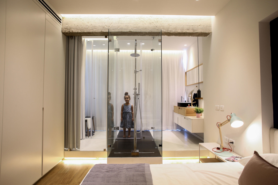 實木材質打造的隔斷應該是最常見的一種,不僅結實耐用,而且好好的設計一番也可以很美觀。實木屏風的上半部分可以設計成博古架,這樣不會浪費空間,而且通風效果也好;而下半部分呢,則會設計成收納柜,這樣能大大提升了居室的收納性能。