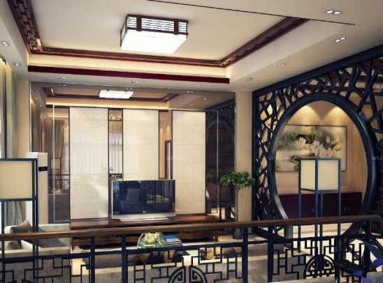 上圖是一款中式格調的居所,為了達到整體風格的一致性,主人選用的是中式門洞造型。通常情況下,中式門洞材料以木質為主,講究材質的手感,多采用高檔硬木。中式門洞造型圓潤典雅,多為圓形或是對稱式的八邊形,門洞經過工藝大師的精雕細刻,每個中式門洞作品都能令人對過去產生懷念,對未來產生一種美好的向往。中式門洞講究布局對稱均衡、端正穩健。