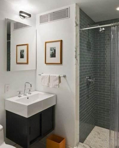 衛生間的設計非常簡單,綠色瓷磚的設計不但好看,而且還能增加空間的層次感和立體感。浴簾的設計,將空間分成干濕2個區域,在視覺上更明顯也更美觀。